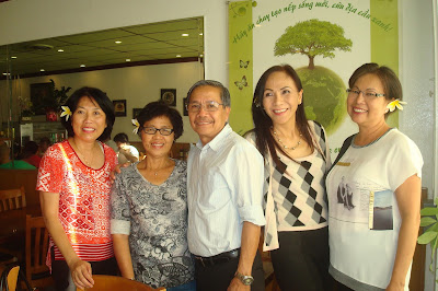 Bao nhiêu câu chuyện về quê hương tôi, về các món ăn, về các loại trái cây được anh Sương kể lại. Có một chút e dè nào đó... Anh chị Sương mới về Việt Nam thăm gia đình. Chúng tôi cũng góp chuyện, mỗi người một ý, nhưng vẫn là những tiếng cười thoải mái, hạnh phúc của một tình bạn lâu ngày. Chúng tôi trao nhau những hạt kim cương lấp lánh, đẹp nhất của tình bạn vì có ai đó nói rằng..." tình bạn như những viên kim cương ". Chúng tôi thưởng thức các món ăn ngon mà Thủy đi chợ, nào là gỏi cuốn, nào là cơm đập, đậu chiên mềm với rau dăm, nào là cá kho tộ, canh chua, đồ xào... Ồ còn quên món nấm tẩm bột chiên nữa chứ! Yummy...yummy .Ba chàng ngự lâm pháo thủ cũng thành một phe , chuyện trò rôm rả. Còn chúng tôi, tứ cô nương thì xúm xít chụp hình, hết tay ba rồi đôi bạn. Thế là các chàng được dịp trổ tài ngắm...chớp... thành thử, ai muốn nhìn ai thì nhìn...mỗi người một hướng... Vui kể gì..