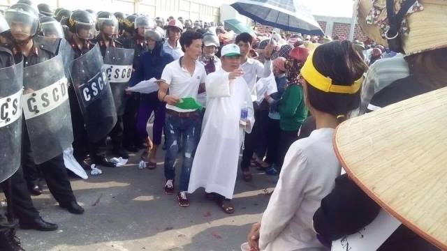 Người biểu tình đối diện với lực lượng CSCĐ tại bản doanh Formosa tại Vũng Áng, Hà Tĩnh. (Hình: FB Sơn Văn Lê)