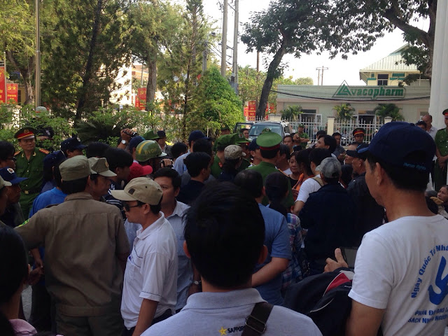 Mọi người tham dự phiên toà trong vòng vây công an, an ninh. Ảnh Dân Làm Báo