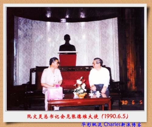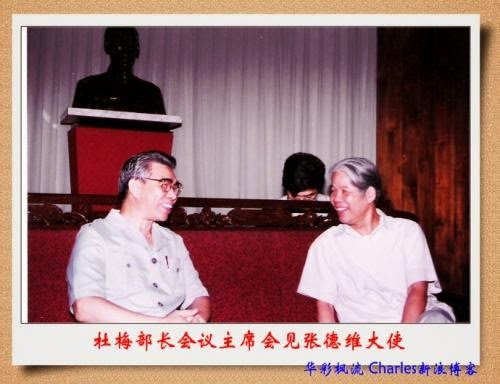 Ngày 5 tháng 6 năm 1993. Đại tướng Võ Nguyên Giáp gặp Đại sứ Trung Quốc Trương Đức Duy (Zhang Dewei), trong không khí bí mật tại Bộ Quốc Phòng Việt Nam (阮文灵张德维大使会见).