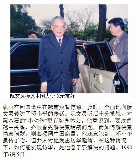 Đặng Tiểu Bình nói tiếp: "Tôi đã biết, đồng chí Nguyễn Văn Linh, ông ấy linh hoạt, làm việc hợp lý, có khả năng, Hồ Chí Minh là người thầy trong lòng của Nguyễn Văn Linh và tôi hy vọng ông ấy hành động dứt khoát với Campuchia, vấn đề ở đây là "con dao cắt đến đâu". Bây giờ tuổi tôi đã lớn, sắp nghỉ hưu, tôi hy vọng sau khi nghỉ hưu hoặc đã nghỉ hưu, trước khi vấn đề Campuchia có thể được giải quyết, quan hệ Trung-Việt trở lại bình thường, là một phần tâm trí của tôi". Đặng Tiểu Bình đặc biệt đẩy ứng lực về phía Việt Nam, ông muốn lấy Campuchia làm sách lược, phải triệt để rút quân. Ông yêu cầu Khải Sơn sẽ truyền đạt những quan điểm này đến Nguyễn Cơ Thạch. Ngoài ra, Đặng Tiểu Bình còn cho biết, mọi sự kiện từ ý nghĩa mà ra: "Nguyễn Cơ Thạch rất thích chơi trò tiểu động tác giả nhân ái" (nguyễn Cơ Thạch giá cá nhân ái cảo tiểu động tác).
