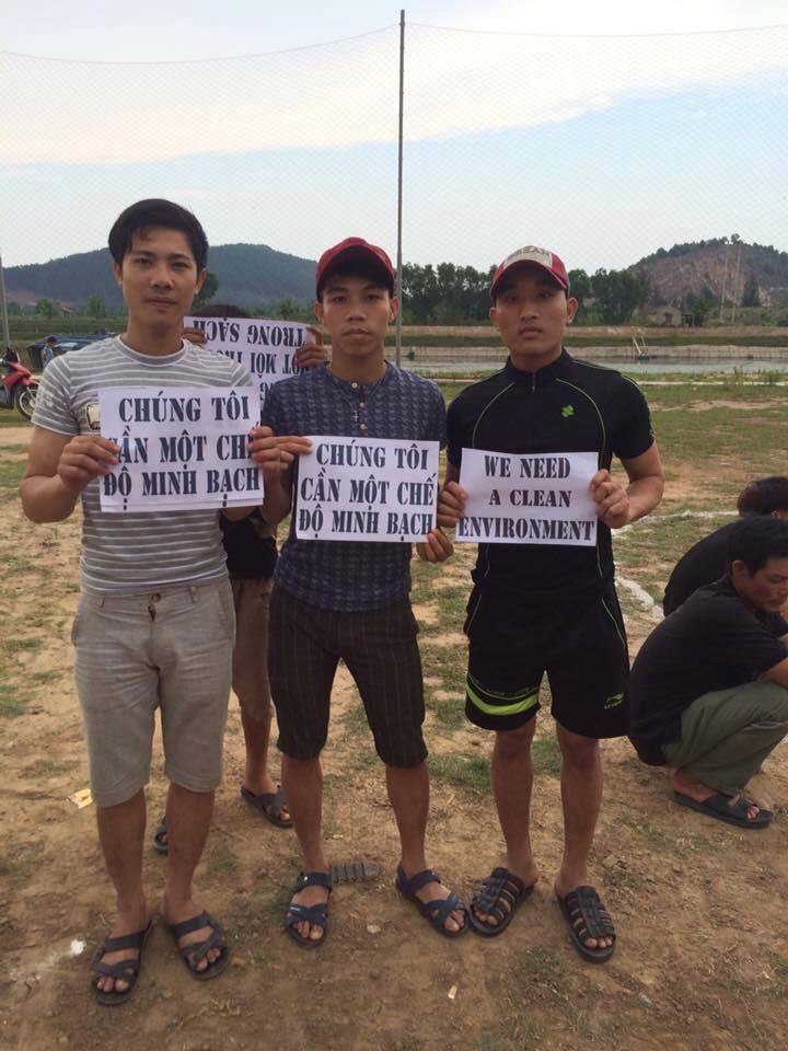 “Stand up for our survival”. “Biển chết thì con người cũng chết”. “Stop Formosa- Stop killing nature”. “SOS, Our sea has died”. “Việt Nam khủng hoảng môi trường sống”. “Polluters are Criminals”. “Save Our Seas”.. “Vì môi trường trong sạch cho Việt Nam”. “Môi trường là lẽ sống”. “Bảo vệ biển và ngư dân”. “Biển sẽ xanh khi chúng ta sạch”. “Bảo vệ môi trường- Bảo vệ sự sống”…