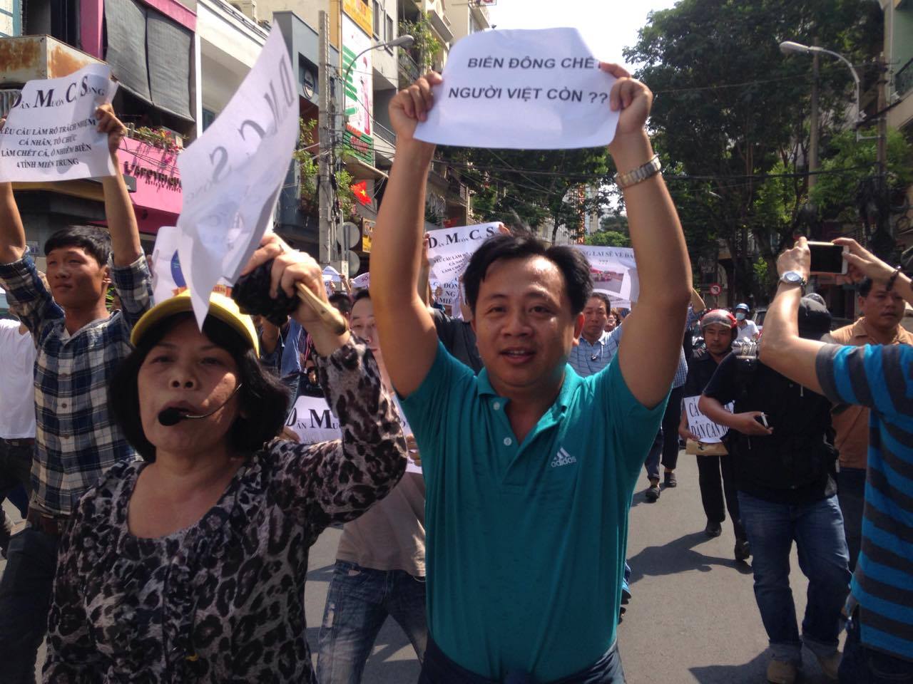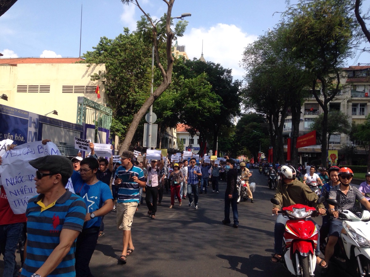 Cuộc biểu tình tại Sài Gòn nổ ra lúc 9:30, hơn 1000 người đổ ra đường giơ cao các khẩu hiệu diễu qua khu vực trung tâm quận 1.
