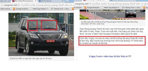 - Sinh vật trông giống Phùng đại nhân về sân bay Nội Bài. Ông Thanh là người có chiều cao khá khiêm tốn, 1m63, sau đợt phẫu thuật tại Pháp bỗng cao hơn 1m7. Nếu đây là ông Thanh, chắc hẳn đã tiện thể dùng ngân sách nhà nước phẫu thuật thẩm mỹ nên trông mũi, trán cao hơn hẳn, thân thể đỡ xồ sề hơn, chắc phải mất hơn 10 kg mỡ bụng, đầu bình thường to hơn mông giờ trông bé nhỏ. Chỉ có duy nhất một hình ảnh của bác Thanh do báo tuổi trẻ chụp, xung quanh bác có rất nhiều ô tô, để che bớt các góc nhìn bất lợi, không biết đây có phải là vụ dàn dựng chụp ảnh không..?
